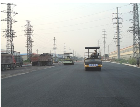 膠州西部城區(qū)柳州路(揚(yáng)州路~蘭州路)道路工程在完成現(xiàn)場路緣石安裝、瀝青混合料訂貨、施工機(jī)械進(jìn)場等各項(xiàng)準(zhǔn)備工作后,于2013年8月31日開始了瀝青混凝土路面的攤鋪工作,并于9月8日完成揚(yáng)州路—蘭州路段瀝青混凝土攤鋪,鋪裝總面積約62500m2。