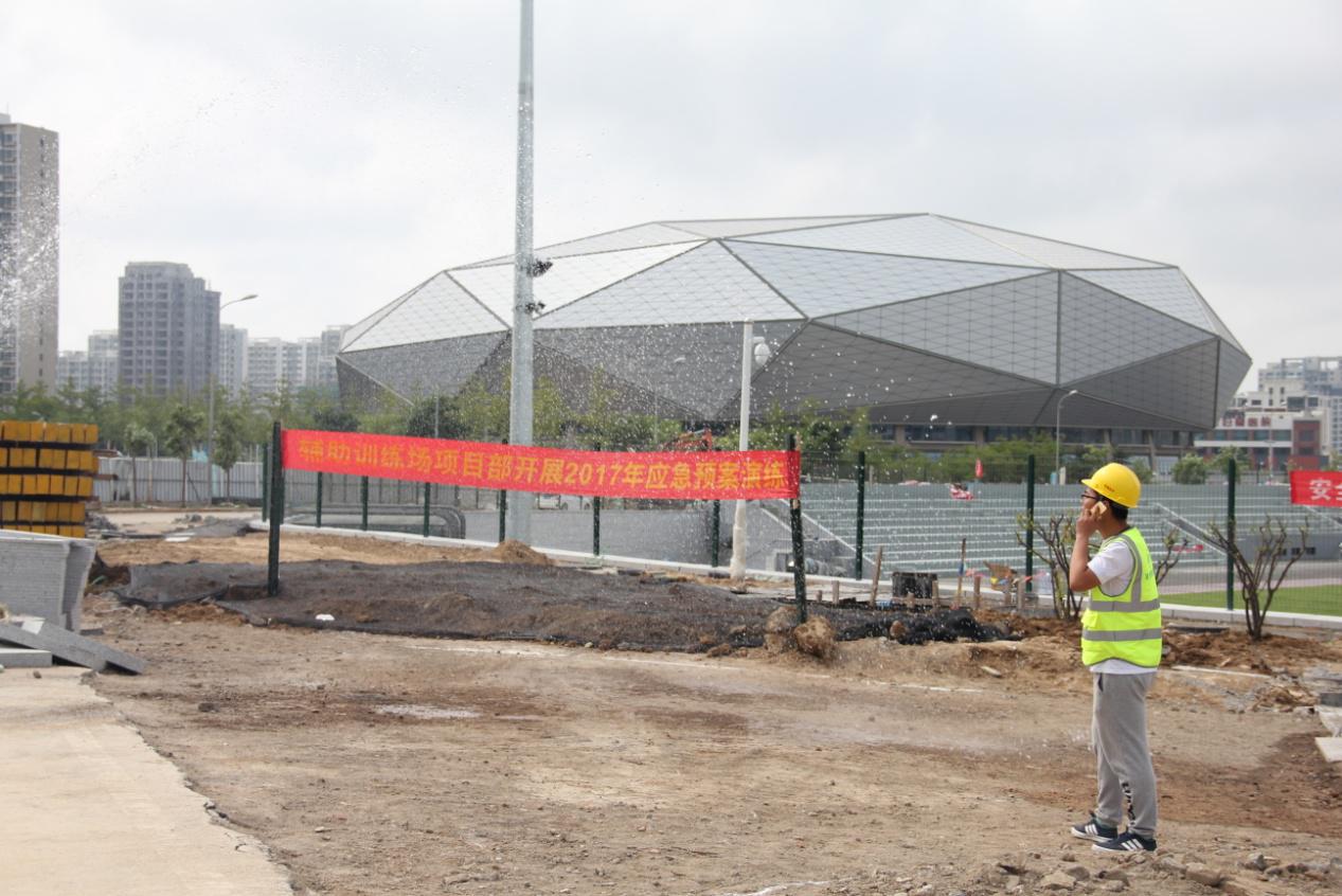 為積極響應(yīng)“安全月”活動,切實加強(qiáng)企業(yè)安全生產(chǎn)工作,提高汛期施工應(yīng)變處理能力,2017年6月23日國信體育中心項目部組織了防汛應(yīng)急演練活動,演練地點設(shè)在國信體育中心輔助訓(xùn)練場項目現(xiàn)場。輔助訓(xùn)練場項目各參建單位、以及其他分公司參加了演練觀摩。