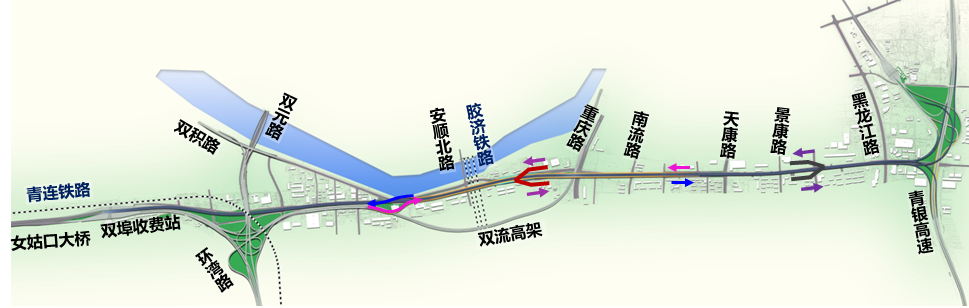 新機場高速連接線(雙埠.夏莊段)作為東岸城區(qū)與新機場最短, 最快捷的聯(lián)系通道,建成后將與青銀高速、跨海大橋接線、環(huán)灣路等既有城市快速路以及黑龍江路、重慶路等南北向城市干道共同形成東岸城區(qū)快速通達新機場的便捷路網(wǎng)體系。作為橫向聯(lián)系膠州灣高速和青銀高速的交通中樞, 新機場高速連接線(雙埠-夏莊段)不論是在中心城區(qū)快速路網(wǎng)銜接、還是在機場交通快速疏解方面,均具有不可替代的重要功能, 亟需在新機場轉(zhuǎn)場運營前盡快開工建設(shè)。