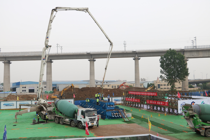 2020年6月17日10點(diǎn)17分,伴隨著機(jī)器的轟鳴,集團(tuán)承建的新機(jī)場高速連接線(雙埠-夏莊段)工程蓋梁澆筑正式開始,工人們冒雨對重達(dá)358噸的蓋梁混凝土進(jìn)行澆筑。該蓋梁的順利澆筑,標(biāo)志著新機(jī)場高速連接線上部結(jié)構(gòu)施工正式進(jìn)入攻堅(jiān)階段,預(yù)制箱梁安裝也進(jìn)入倒計(jì)時(shí),我集團(tuán)公司的施工進(jìn)程已走在全線的前列。