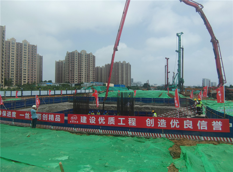 首座承臺澆筑為主線橋6#承臺,為確保承臺首件工程施工質(zhì)量,項目部嚴(yán)格遵循“質(zhì)量與安全并重、技術(shù)與施工并行”的原則,安全高效保質(zhì)保量地推進承臺澆筑施工。工地上,延伸數(shù)百米遠(yuǎn)的作業(yè)面內(nèi),振動打樁機、旋挖鉆機、吊車等大型機械密集分布,同步流水作業(yè);建筑工人頭頂烈日,穿梭于機械轟鳴的施工現(xiàn)場,揮汗如雨。首個承臺澆筑過程中,根據(jù)領(lǐng)導(dǎo)班子帶班制度的規(guī)定,領(lǐng)導(dǎo)和技術(shù)人員全程旁站,為“首件工程”圓滿落地保駕護航。