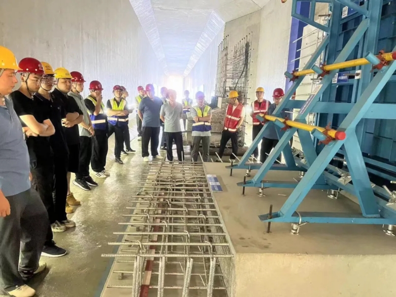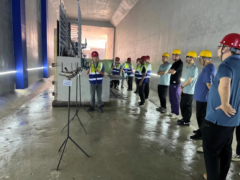 在觀摩現(xiàn)場,項(xiàng)目總工葛帥就明挖區(qū)間一期圍護(hù)結(jié)構(gòu)到主體結(jié)構(gòu)施工過程中的精細(xì)化管控亮點(diǎn)、施工過程中班組建設(shè)、世界一流地鐵建設(shè)質(zhì)量精細(xì)化管理、橋隧共建課題研究介紹及階段性成果進(jìn)行了詳細(xì)的介紹和講解。與會(huì)人員對(duì)基坑開挖、灌注樁網(wǎng)噴混凝土、高壓旋噴樁、冠梁、擋墻、地下連續(xù)墻、錨索、結(jié)構(gòu)防水質(zhì)量精細(xì)化管控以及實(shí)體樣板、班組建設(shè)情況進(jìn)行了現(xiàn)場觀摩和經(jīng)驗(yàn)交流,紛紛表示此次觀摩交流不僅感受到了精細(xì)化管理對(duì)提升工程品質(zhì)的顯著優(yōu)勢,更學(xué)習(xí)到了新材料、新技術(shù)、新工藝應(yīng)用的寶貴經(jīng)驗(yàn),后續(xù)將以本次觀摩為契機(jī),學(xué)習(xí)借鑒精細(xì)化管理經(jīng)驗(yàn),助力工程現(xiàn)場質(zhì)量精細(xì)化管理水平提升。