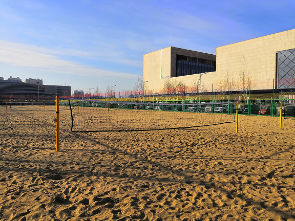 The beach volleyball court is located on the west side of the citizen sports fitness square, with a length of 170 meters in the north and south, with a width of 30 meters in the east and west. It covers an area of 5100 square meters which can display three beach football fields, six beach volleyball fields or two beach handball fields.During the construction period, the project department upholds the principle of "high standards and strict requirements", strictly controls the quality of raw materials, uses new sand screening machine and ensures the fineness of sand used for paving to build a site that meets the national single competition standard, fully considers the integration of resources to achieve a multi-purpose use.