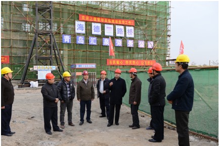 伴隨著十八大的勝利召開,我公司承建的青島餐廚垃圾處理廠工程主體部分已封頂。本工程是山東省首個餐廚垃圾處理廠項目、青島市市政府重點工程之一,因此備受各級領(lǐng)導(dǎo)關(guān)注。12月1日下午,山東省住房和城鄉(xiāng)建設(shè)廳副廳長耿慶海不畏嚴(yán)寒蒞臨工地指導(dǎo)工作,隨行陪同的還有市市政公用局副局長劉海波、項目建設(shè)方青島十方生物能源有限公司總經(jīng)理潘建強、我公司總經(jīng)理鞏光磊。耿廳長對戰(zhàn)斗在一線的施工人員表示了親切的慰問,對施工現(xiàn)場的文明施工、安全保證、質(zhì)量控制、工程進度給予充分肯定,使項目部全體參建人員倍受鼓舞。