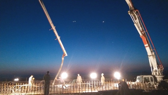 經(jīng)過16個小時的連續(xù)施工,隨著最后一方混凝土泵送入模,終于在28日凌晨4時40分完成全部混凝土澆筑工作。眼看著又一個工程逐漸成型,項目部管理人員疲憊的臉龐上露出了舒心和笑意,回顧過去的兩年時光,從工程進場直到今夜,歷經(jīng)寒冬,走過酷暑,同事們任勞任怨通宵達旦看成家常便飯,當頭烈日加班加點更是習以為常。這里留下了他們數(shù)不清的汗水,烙下了他們無數(shù)個日夜穿梭的腳印,而今天悄然矗立起的這座橫貫南北的現(xiàn)代化大橋是對他們付出的最好回報。