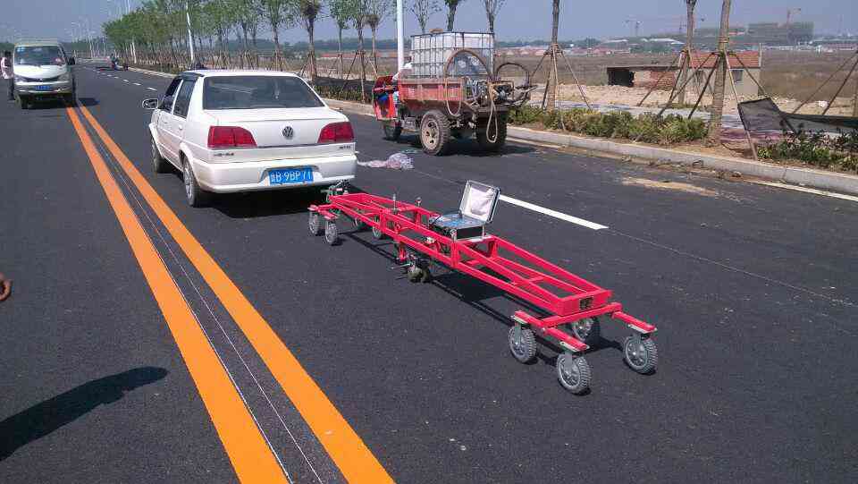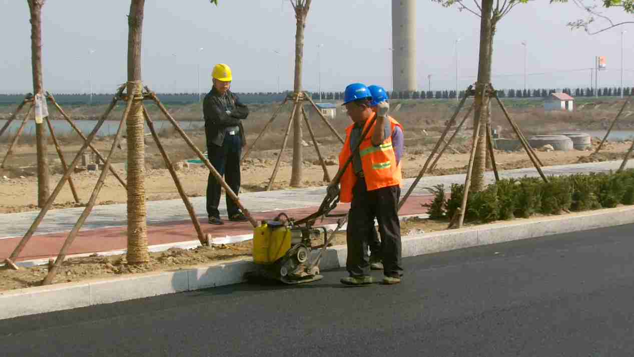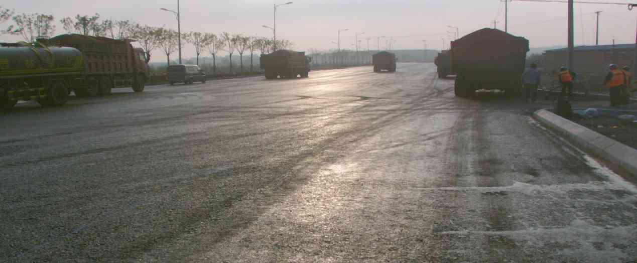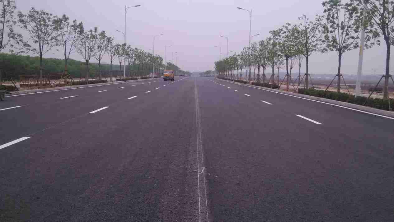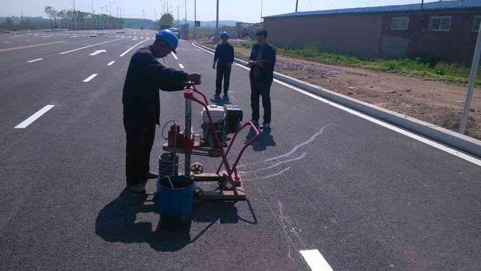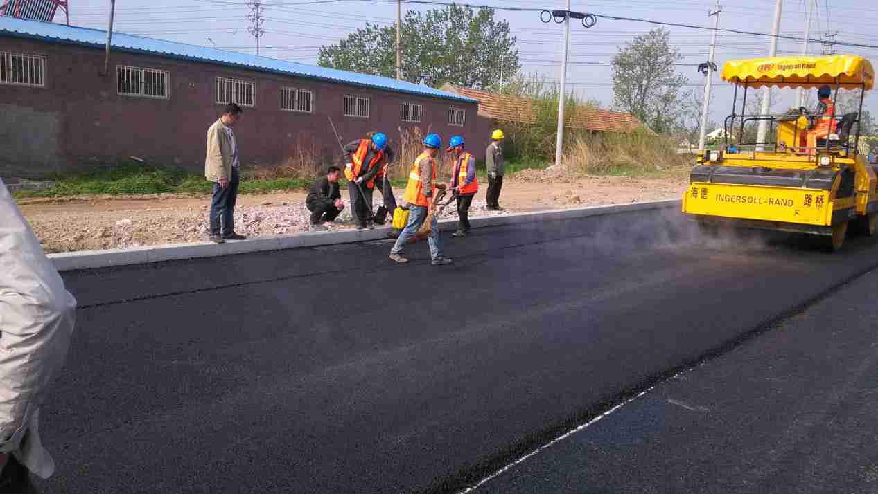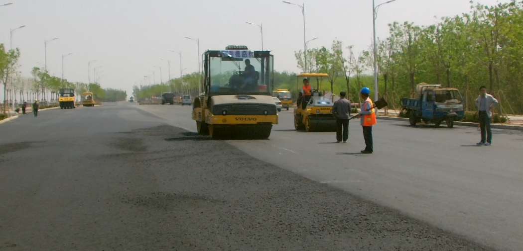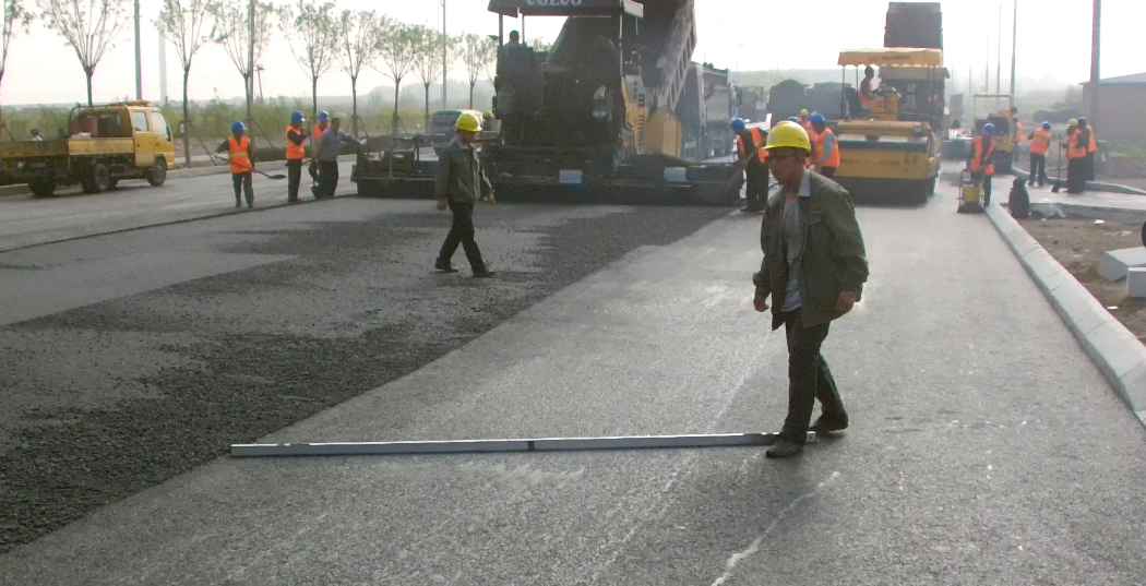 施工前,按照制定的施工方案對每一位人員進行技術(shù)交底,做到各有其責,相互配合;使用瀝青灑布車在已清掃完畢的路面上進行瀝青粘層油的灑布,達到覆蓋率0.5L/m2以上。施工過程中,項目部人員嚴格技術(shù)規(guī)范進行,確保工程質(zhì)量滿足設計要求。為保證攤鋪機接縫的熱處理,兩臺攤鋪機成梯形攤鋪,距離保持在20m左右。雨水篦子順坡環(huán)節(jié),應高新區(qū)質(zhì)監(jiān)站要求,嚴格按照圖集施工,在橫向0.5米與縱向1米處開始順坡,務必達到業(yè)主與質(zhì)監(jiān)站的要求。路緣石邊緣夯實中,對于小型壓路機未碾壓到位的部位,采用平板夯進行夯平壓實,由專職施工人員,鏟除由于擠壓高出路面的瀝青料,保證路緣石接觸面處平整、順直。初壓后,專職管理人員緊跟平整度測量,發(fā)現(xiàn)平整度不好的部位及時進行補料處理,保證面層瀝青平整度達到設計與規(guī)范要求。分公司總經(jīng)理程顯光親力親為,現(xiàn)場監(jiān)督瀝青碾壓工作,嚴格控制碾壓時間與碾壓速度,嚴禁壓路機在已成型的路面上停留,杜絕因壓路機停留造成的輪跡波浪現(xiàn)象,保證了面層瀝青的平整度。為保證南北兩幅接茬平順,由專職管理人員帶領工人對道路中線進行邊緣切直處理,保證了北半幅瀝青面層攤鋪的順直。