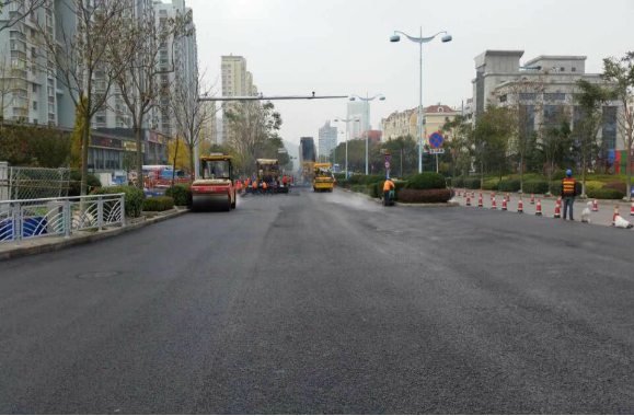 該工程工期緊、任務(wù)重。項(xiàng)目開工后銀川路項(xiàng)目部人員積極協(xié)調(diào)組織施工,克服重重困難,每日加班加點(diǎn)。南半幅道路從進(jìn)場到完成僅用12天時(shí)間,第2天即完成補(bǔ)強(qiáng)區(qū)域開挖并攤鋪水泥穩(wěn)定碎石(2806㎡)。11月12日進(jìn)行南半幅SMA-13瀝青混凝土面層攤鋪,并于當(dāng)天完成道路劃線,瀝青攤鋪質(zhì)量和道路劃線速度得到業(yè)主稱贊。