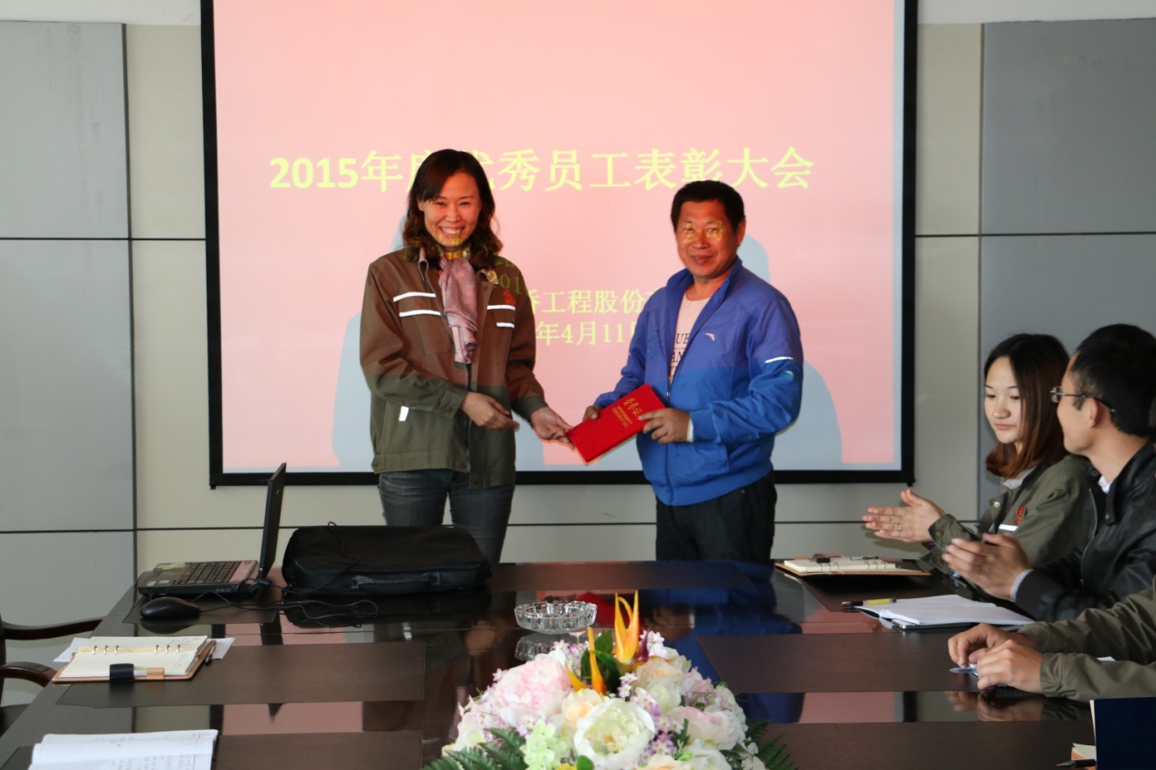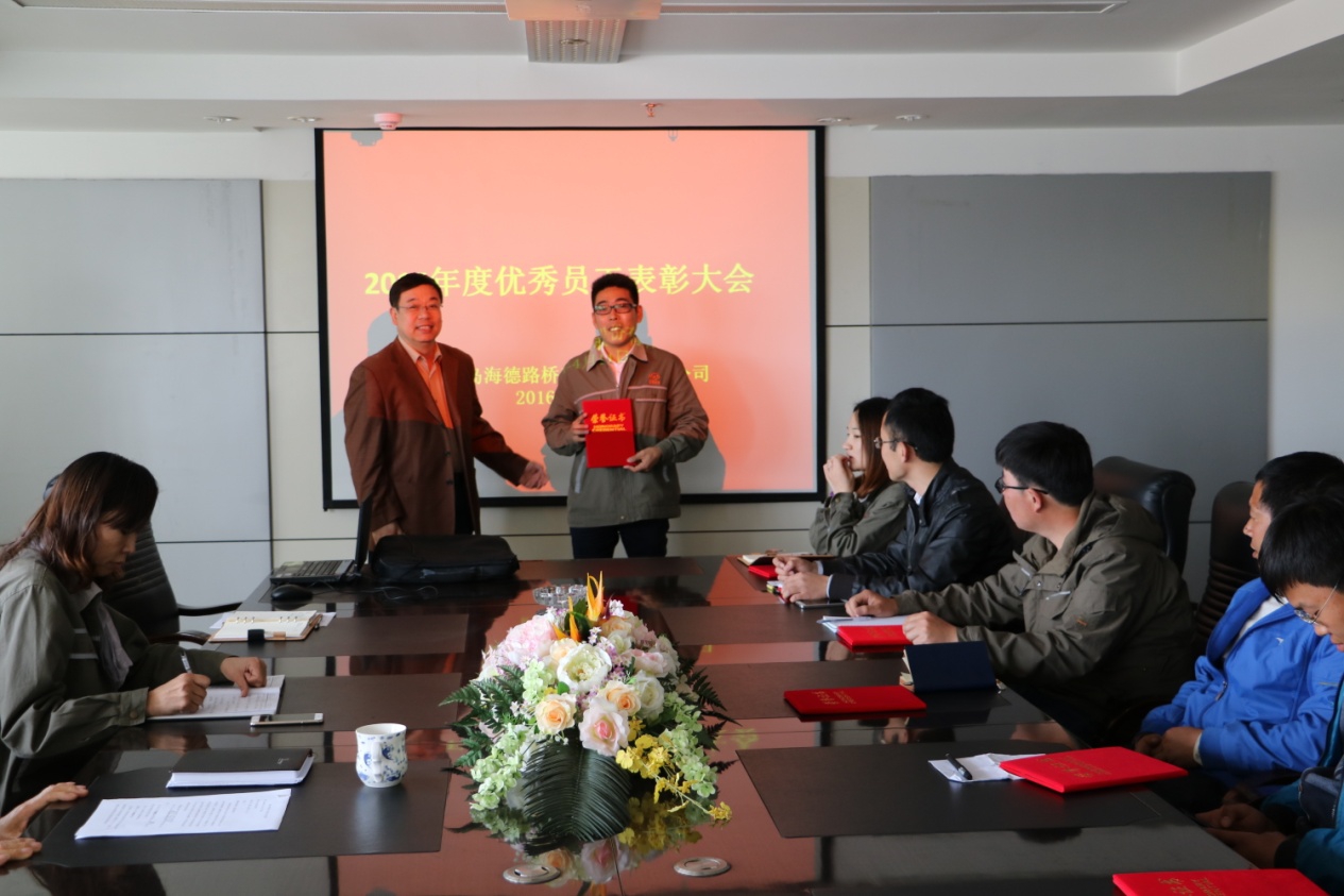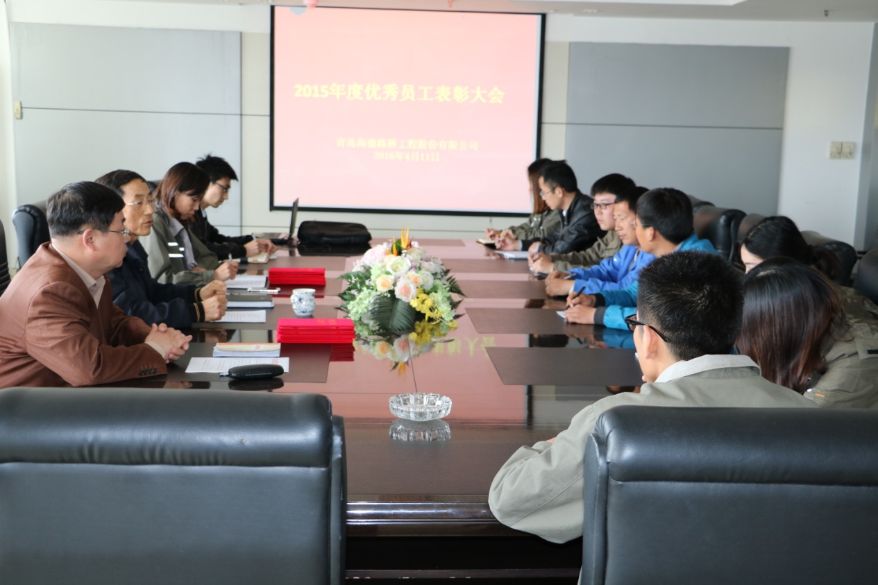 2016年4月11日,“青島海德路橋工程股份有限公司2015年度優(yōu)秀員工表彰大會”在公司總部會議室隆重舉行,公司黨總支副書記張永道、執(zhí)行總裁寇媛媛、工會主席呂同占、綜合管理部副經(jīng)理孟鵬出席會議并做重要講話。