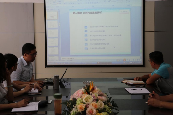 公司法律顧問、律師鞠波從合同法律風(fēng)險(xiǎn)識(shí)別及防范、企業(yè)用工法律風(fēng)險(xiǎn)及防范兩大內(nèi)容展開,從我公司企業(yè)經(jīng)營(yíng)合同簽訂、企業(yè)用工勞動(dòng)合同簽訂現(xiàn)狀出發(fā),通過對(duì)以往公司管理中發(fā)生的租賃合同、施工承包合同、勞動(dòng)用工合同糾紛,及成功簽訂執(zhí)行的規(guī)范合同范本分析,向員工們?cè)敿?xì)講解了合同談判和簽訂過程中需要特別注意的各種風(fēng)險(xiǎn)。鞠律師提出為避免糾紛需認(rèn)真做到以下幾點(diǎn):1、工作中要做好文字記錄和簽認(rèn)程序,2、員工在對(duì)外業(yè)務(wù)中明確自身代表的企業(yè)立場(chǎng),3、公司簽訂合同時(shí),解決好歸屬地管轄問題,4、勞動(dòng)用工過程中對(duì)甲乙雙方的權(quán)益保護(hù)等。通過對(duì)各案例深入淺出的講解,將一些晦澀的法律知識(shí)生動(dòng)的灌輸給員工,員工們的法律意識(shí)得到極大提高。