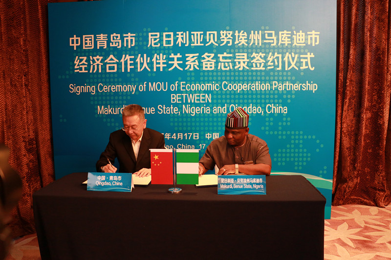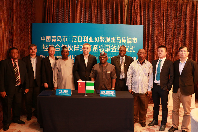 此次交流活動得到了青島市商務局的大力支持,青島市商務局副局長淳于賢力代表青島市政府與尼日利亞貝努埃州馬庫迪市簽訂了經(jīng)濟合作伙伴關(guān)系備忘錄。