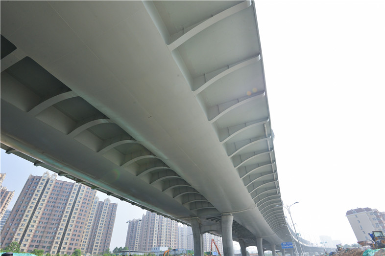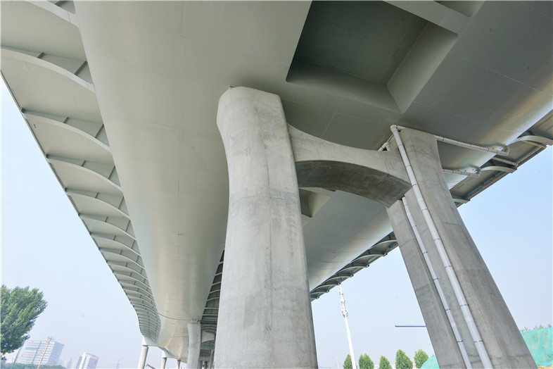 在市住房城鄉(xiāng)建設局和城投集團的調(diào)度督導、精心策劃下,項目部強化施工質(zhì)量精細化管理,將精品意識貫穿于每一個環(huán)節(jié)。施工完成的90顆樁基,經(jīng)超聲波完整性檢測,全部為Ⅰ類樁。墩柱施工前先后澆筑了5個墩柱小樣,試驗了不同脫模劑的使用效果,優(yōu)化了混凝土配合比,改進了模板拼裝及振搗工藝,保障了墩柱拆模后,結(jié)構(gòu)密實,氣泡少;混凝土色差小、表面平整光滑。鋼箱梁焊接,嚴格把控焊縫質(zhì)量,每道焊縫均采用鋁制銘牌進行編碼,信息明確,責任到人,焊縫驗收合格率達100%。項目采用的仿石路緣石,由集團全資子公司青島海德信達新型材料科技有限公司自主研發(fā)生產(chǎn),引進德國技術生產(chǎn)線,從原材料配料攪拌、到產(chǎn)品成型養(yǎng)護、水磨拋光,進行自動化控制,產(chǎn)品強度高,綠色環(huán)保,打造零天然石材工程。