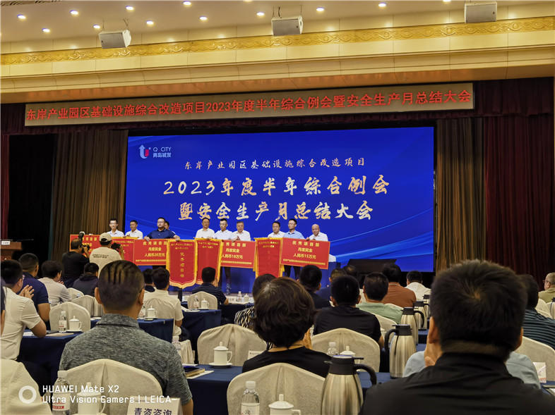 7月9日上午,東岸產(chǎn)業(yè)園區(qū)基礎(chǔ)設(shè)施綜合改造項(xiàng)目2023年度半年綜合例會順利召開,會上通報了各參建單位六月份及二季度考核情況,集團(tuán)分別獲得了92.43、91.66分考核成績,均排名全線施工單位榜首,獲得甲方獎勵50萬元,并上臺進(jìn)行經(jīng)驗(yàn)分享匯報。