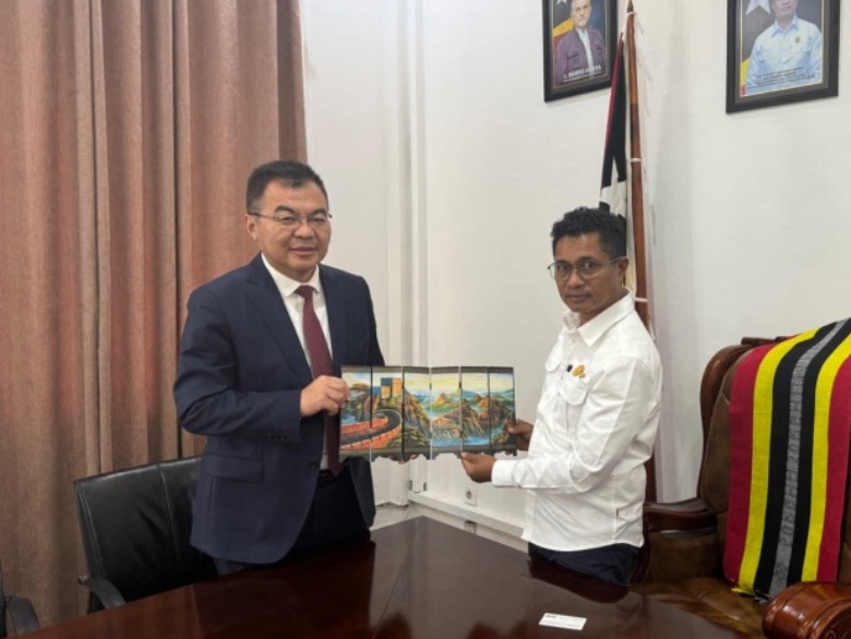 當地時間2024年6月8日至11日,集團董事長鞏光磊先后拜會東帝汶國家副總理薩比諾,并赴集團承建的東帝汶阿伊萊烏至利逵度公路項目檢查、指導工作。海外分公司總經理譚翔、東帝汶項目部經理祝仰豐等陪同參加上述活動。