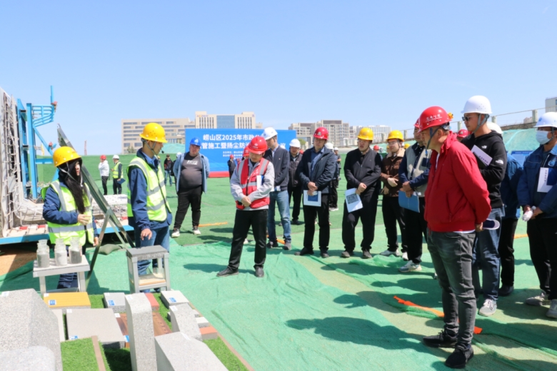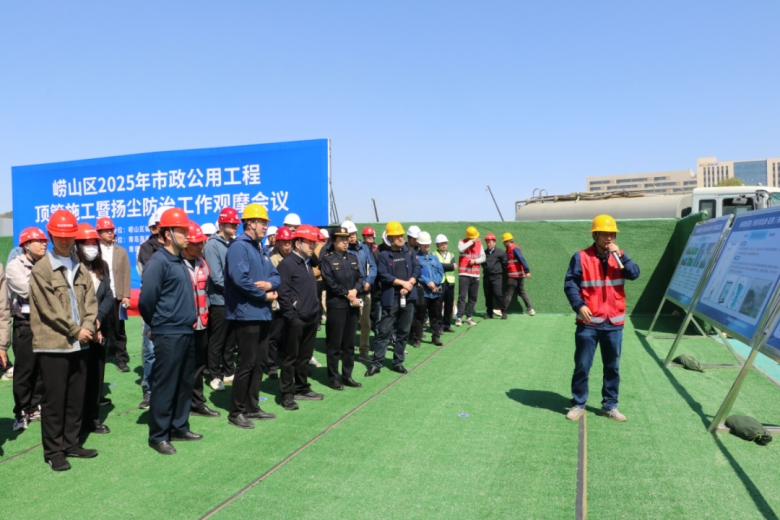 2025年4月21日上午由嶗山區(qū)城市管理局主辦,集團(tuán)公司承辦的嶗山區(qū)市政公用工程頂管施工暨揚(yáng)塵防治工作觀摩會(huì)在科苑經(jīng)五路市政配套工程施工現(xiàn)場順利舉行。嶗山區(qū)城市管理局、嶗山區(qū)城市運(yùn)行服務(wù)中心、嶗山區(qū)生態(tài)環(huán)境分局等相關(guān)負(fù)責(zé)人,以及嶗山區(qū)重點(diǎn)市政工程施工、監(jiān)理單位代表等100余人參加此次觀摩會(huì),現(xiàn)場觀摩了揚(yáng)塵治理新舉措、DN4000大管徑頂管施工工藝及海德信達(dá)新材料,并進(jìn)行深度交流,共同探索智慧化、精細(xì)化施工管理路徑。青島日報(bào)觀海新聞客戶端進(jìn)行了相關(guān)報(bào)道。